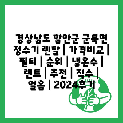 경상남도 함안군 군북면 정수기 렌탈, 깨끗하고 건강한 물을 위한 선택! 가격비교부터 필터, 순위, 냉온수, 렌트, 추천, 직수, 얼음 기능까지 꼼꼼하게 비교하고 2024 후기까지 확인하여 나에게 딱 맞는 정수기를 찾아보세요.