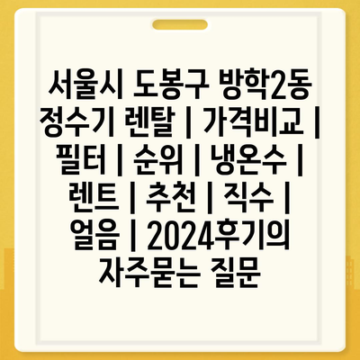 서울시 도봉구 방학2동 정수기 렌탈 | 가격비교 | 필터 | 순위 | 냉온수 | 렌트 | 추천 | 직수 | 얼음 | 2024후기 에 대해 자주 묻는 질문 TOP 5