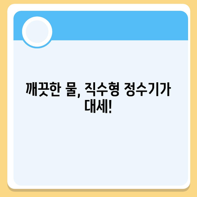 최근 직수형 정수기가 뜨거운 인기를 얻고 있습니다. 직수형 정수기는 물탱크 없이 직접 수도관에서 물을 받아 필터를 거쳐 정수하여 위생적이고 신선한 물을 알려알려드리겠습니다. 부피가 큰 정수기가 차지하는 공간도 줄여 좁은 공간에도 설치가 용이하여 실용적입니다.