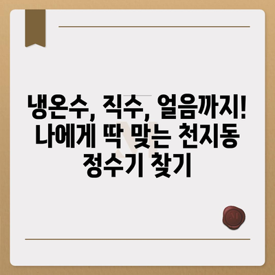 냉온수, 직수, 얼음까지! 나에게 딱 맞는 천지동 정수기 찾기