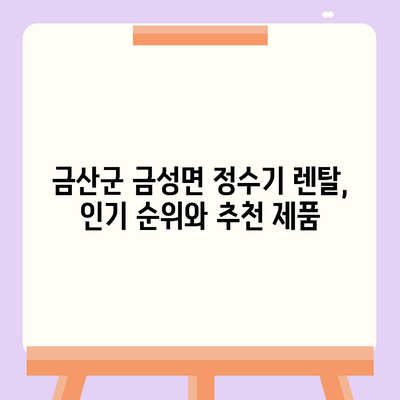 “금산군 금성면에서 인기 있는 정수기 브랜드를 살펴보고, 렌탈 전문 업체의 추천도 참고하면 좋은 선택을 할 수 있습니다!”