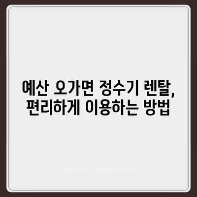예산 오가면 정수기 렌탈, 편리하게 이용하는 방법