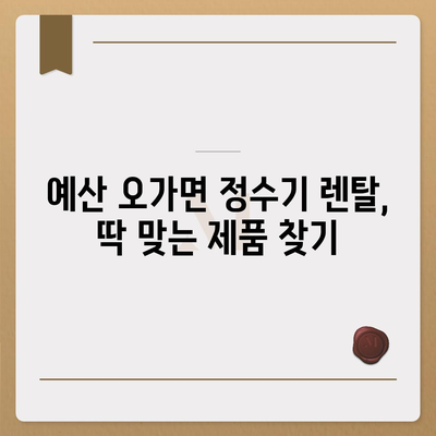 예산 오가면 정수기 렌탈, 딱 맞는 제품 찾기